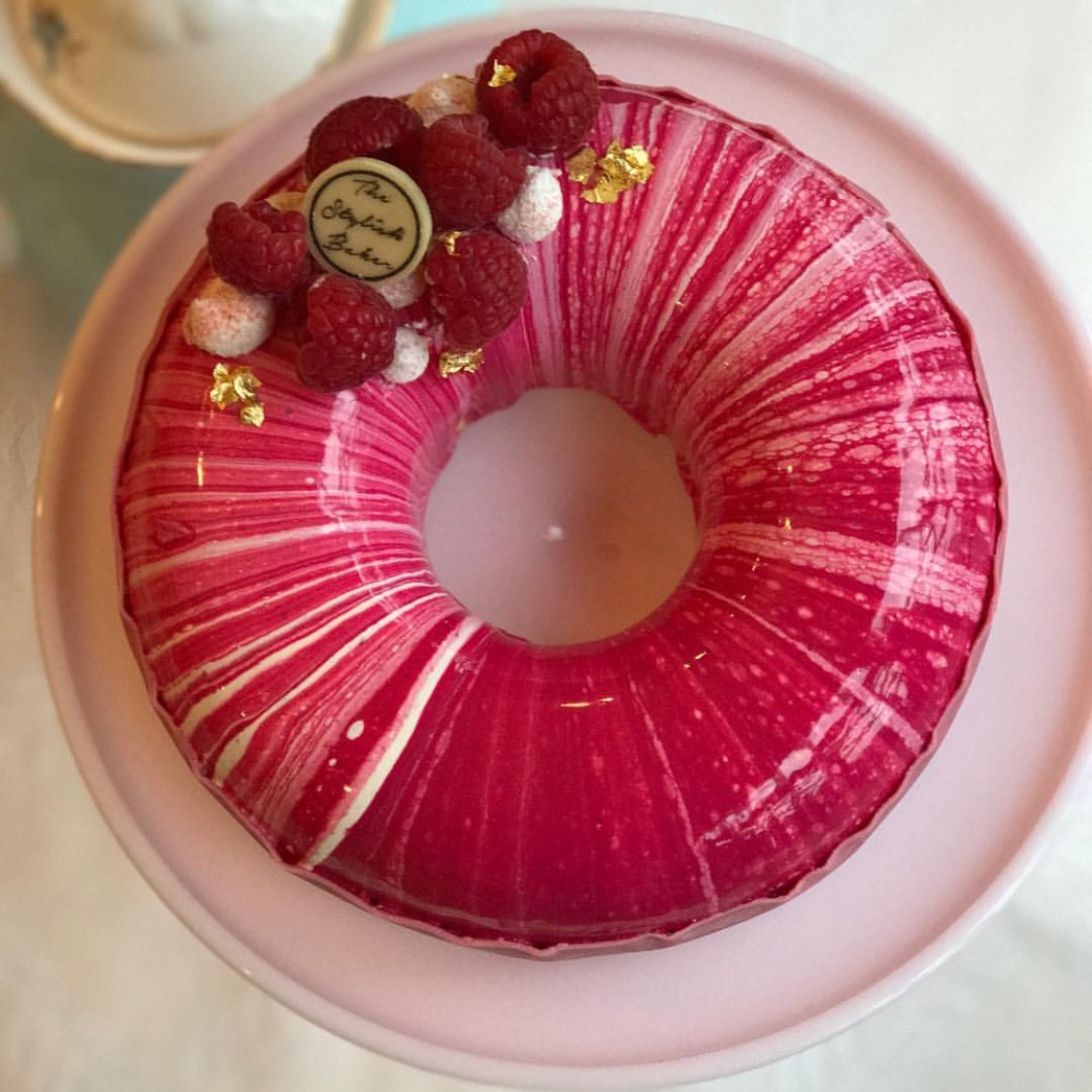 Recreate this Entremet by shopping the following essentials; @silikomartprofessional Savarin 180 and Savarin 160 , fish gelatine, pectin nh, Valrhona Ivoire 55% white chocolate, gold leaf.